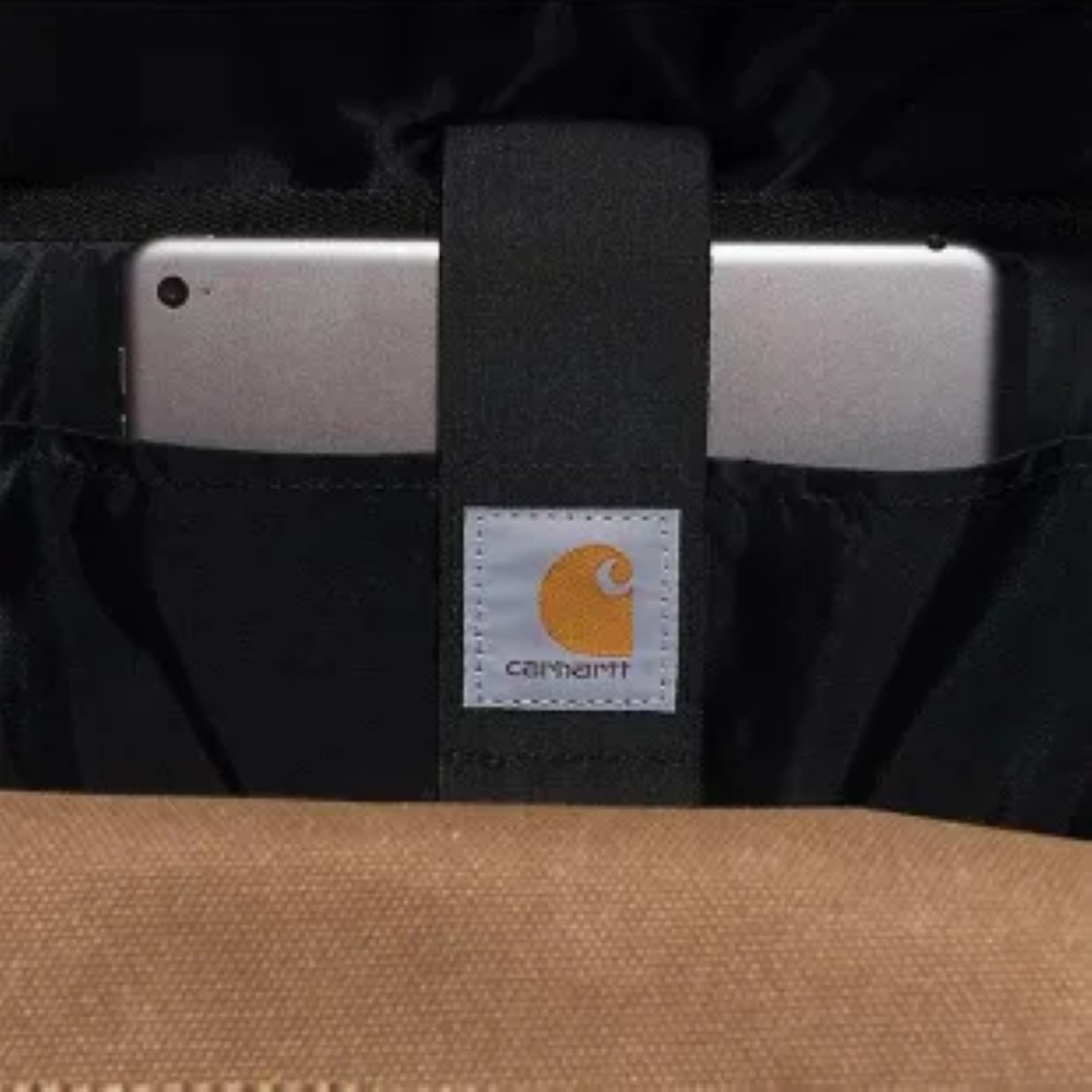 תיק רב תכליתי דוחה מים עם תא יחיד. תיק העבודה הזה עשוי מחומר כבד ששומר על הציוד שלך יבש גם בגשם קל. התא הראשי כולל כיס מרופד למחשבים ניידים עד 15 אינץ/ 38 ס"מ ושרוול טאבלט, ונרתיק הרוכסן מלפנים יכול להתאים לעטים, כבלי החשמל וטלפון. תא משקפיים מצופה פליסה, שני כיסי צד רשת, פאנל אחורי מרופד של רשת אוויר, תווית Carhartt תפורה על כיס. תיק שנבנה להחזיק מעמד, ומחוזק בתחתית עבור משקל נוסף.