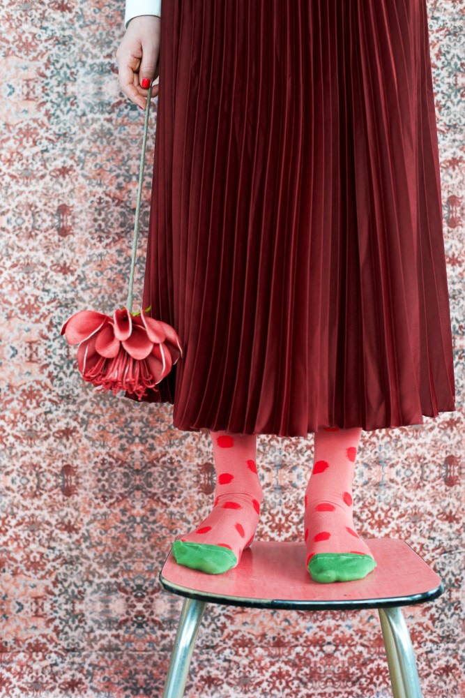 קולקציה של גוונים אדומים, ורודים, צהוב ירקרק של לימון וצבע עץ האורן. קולקציה שרוצה לספר על המתרחש בין הנעליים לקרסוליים. הסיפור תמיד מתחיל בצבעים, בהשתלבויות הלא צפויות, המשעשעות, קולקציה המבטאת את הרצון לשמוח, להתפנק, לבחור בעצמנו.
