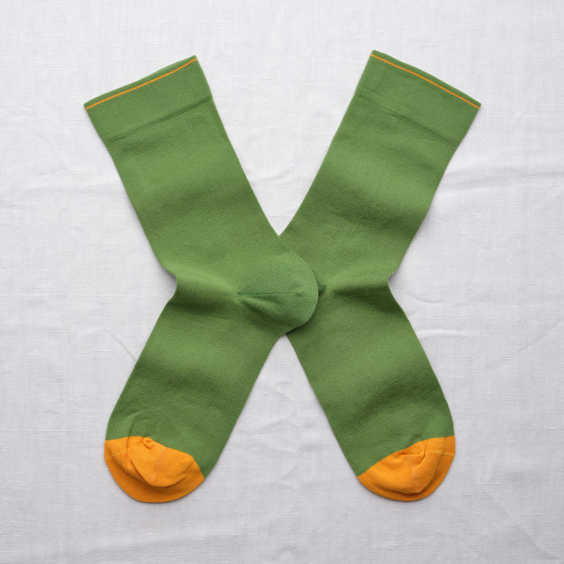 גרבי כותנה מבית בון מייסון קולקציית המניפה . גרביים חלקות בירוק אבוקדו עם סיומת כתום בהיר.